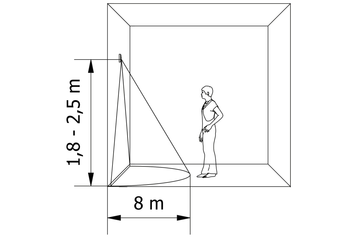 • Empfohlene Montagehöhe: Optimale Erfassungsergebnisse werden erzielt, wenn der Sensor in einer Höhe von 1,8 bis 2,5 Metern montiert wird.