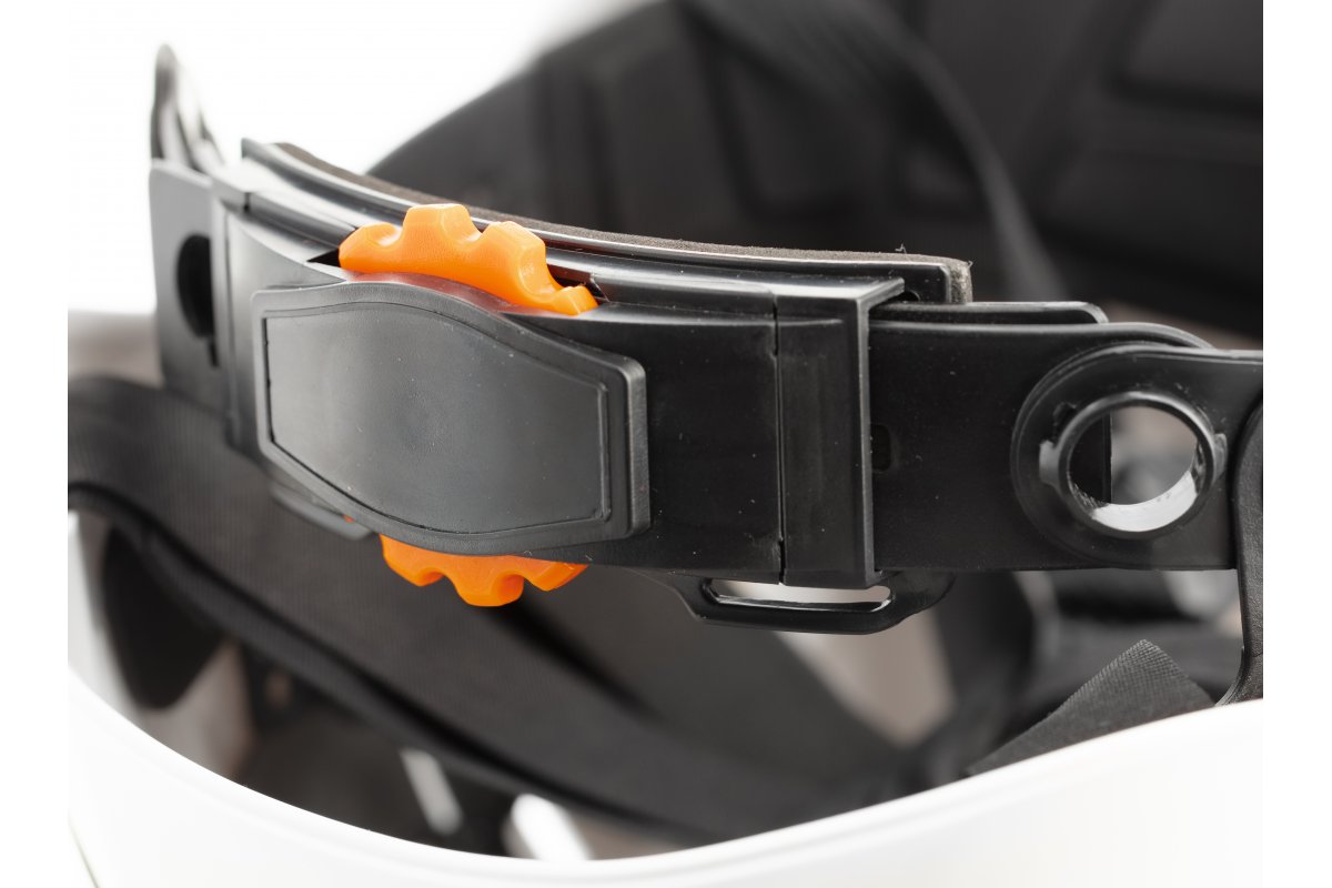 Der leichte DIMEL Schutzhelm im sportlichen Design bietet dem Träger maximalen Komfort durch Belüftungsöffnungen und verstellbare 3D-Visiere. Die robuste Schale des Schutzhelms bleibt auch bei seitlichem Druck formstabil und erfüllt die Sicherheitsanforderungen auf dem Bau oder in der Industrie. Der Helm hat ein kurzes Visier und einen Vierpunktgurt für optimalen Sitz. Die Traversengröße ist mittels eines Drehknopfes einstellbar. Die Helmschale ist aus ABS gefertigt und sorgt für Langlebigkeit. Darüber hinaus ist der Helm mit Adaptern für die Befestigung von z. B. Visier, Brille, Ohrenschützern oder Stirnband ausgestattet. So kann das Produkt an die Bedürfnisse des jeweiligen Benutzers angepasst werden.