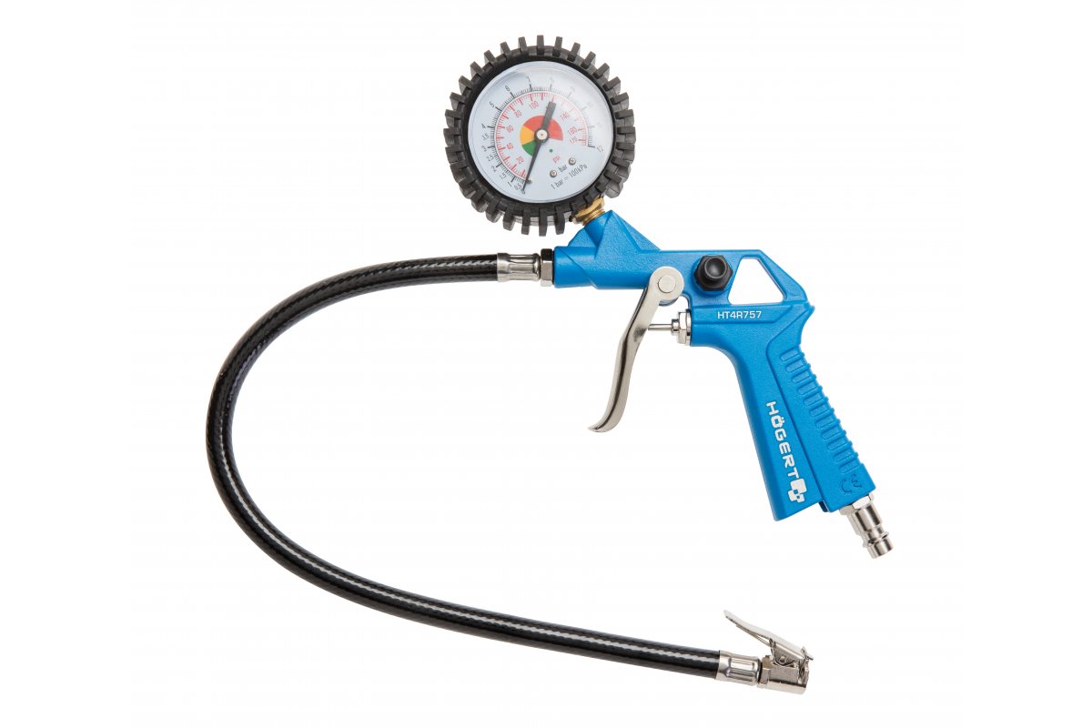 Aufblasbare Pistole mit Manometer für den universellen Einsatz. Nützlich im Haushalt, in der Werkstatt und in Garagen.