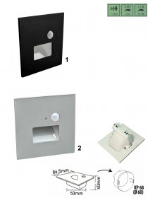 Dieses Licht schaltet sich ohne Klicken ein! LED-Treppenbeleuchtung für die Beleuchtung von Treppen, Fluren usw. Vorgesehen für die Montage in der Dose KP 68. Alle Leuchten in einer Reihe haben immer einen Sensor (Leuchten ohne Sensor werden nicht produziert). In der schwarzen Version ist der Sensor jetzt schwarz im Vergleich zum Foto, d.h. er fügt sich besser in die Umgebung ein). |