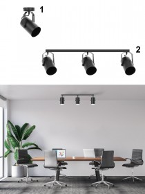 Es ist auch möglich, ein architektonisches Konzept mit einer schwarzen Balkenleuchte zu erstellen. Spectrum-Variante, Nowodvorski-Variante
