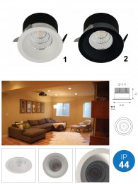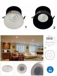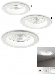 Einbaudownlights eignen sich für abgehängte Decken, wo sie durch ihre Schlichtheit und Zeitlosigkeit auf den ersten Blick nicht auffallen, in der Nacht aber den Raum fast taghell ausleuchten können.