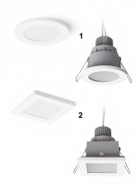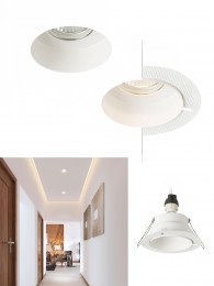 Einbaudownlights eignen sich für abgehängte Decken, wo sie durch ihre Schlichtheit und Zeitlosigkeit auf den ersten Blick nicht auffallen, in der Nacht aber den Raum fast taghell ausleuchten können.