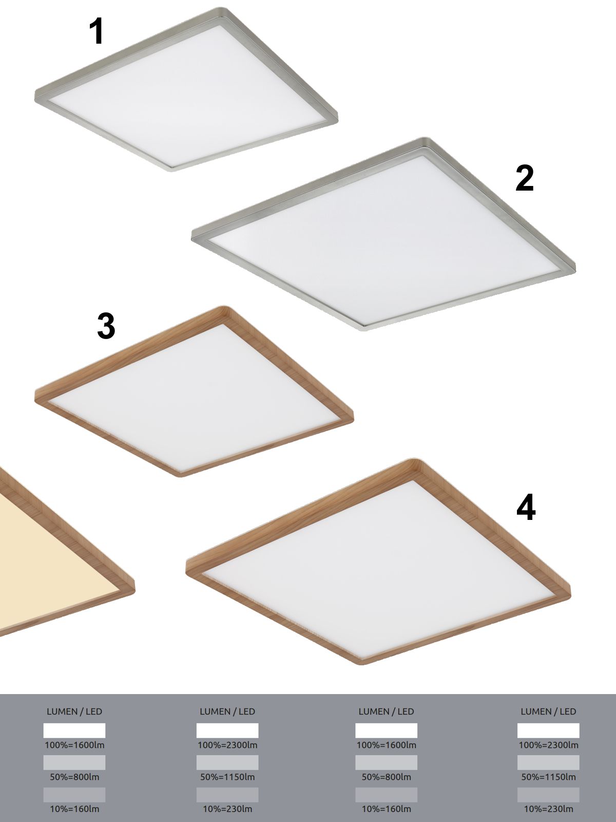4. GL-41563-24WW Stropní svítidlo, plast se vzhledem dřeva, satinovaný, bílý, několik úrovní přes nástěnný spínač, pam. funkce, IP44, 3 úrovně osvětlení přes nástěnný spínač (100-50-10%), Dx?xV:420x420x25mm, včetně LED 24W 230V, 2300lm výstup, 3000K detail výrobku