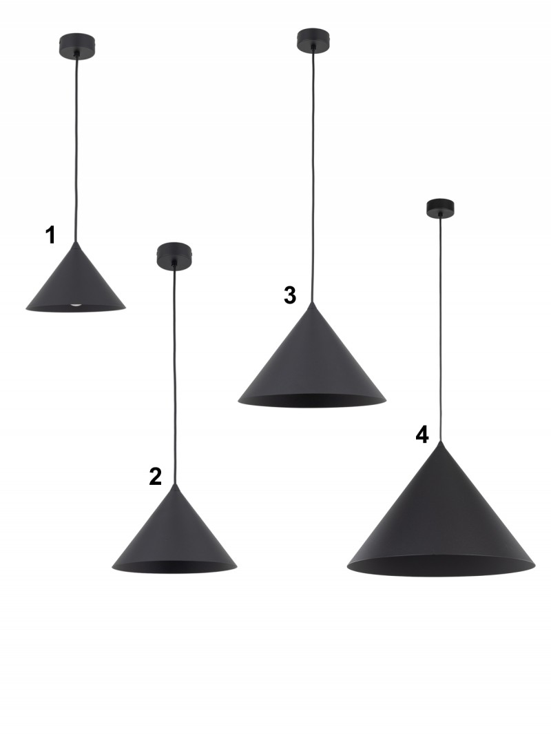 Moderne Kronleuchter, geeignet für das Wohnzimmer, Esszimmer über dem Esstisch oder in der Küche über der Kücheninsel. Sie bestehen aus Metall und Kunststoff in elegantem Schwarz. |