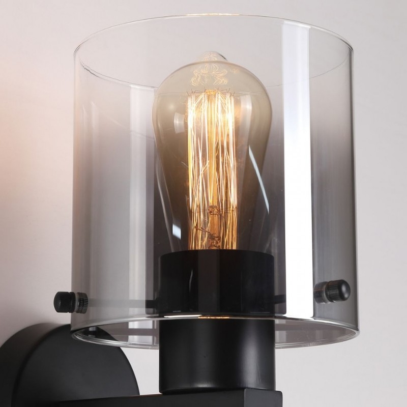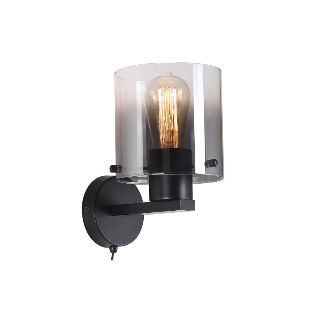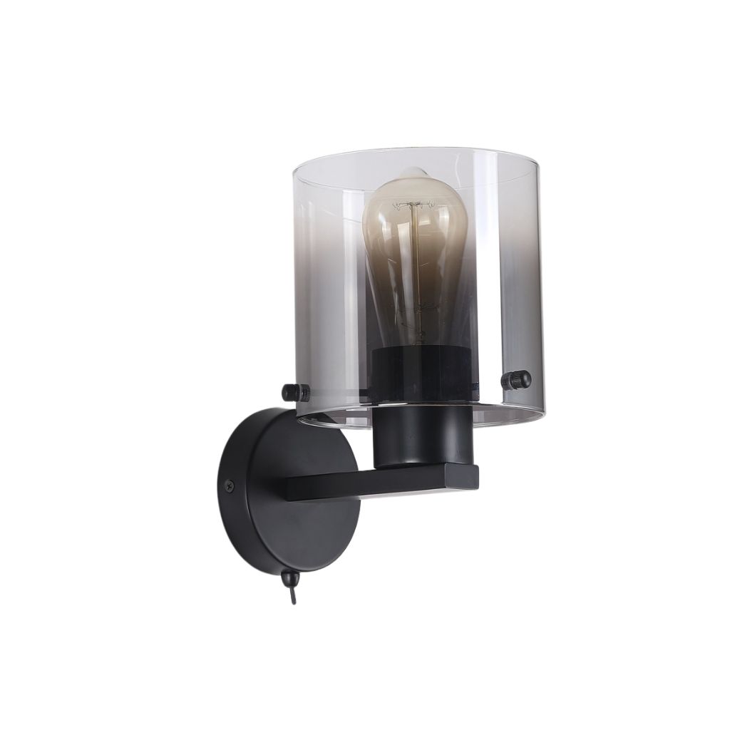 Searchlight Wandleuchte Farbe schwarz und rauch, Oberflächenbehandlung Färbung matt, das verwendete Material ist Metall und Glas. Abmessungen in cm: Gesamthöhe: 24, Höhe: 24, Breite: 15, Länge: 0, Projektion: 20. Lichtquelle Fassung E27, Glühbirnen benötigt 1, Lichtquelle nicht enthalten, empfohlene Glühbirne Typ vom Hersteller ist klassische Glühbirne für max 60W.