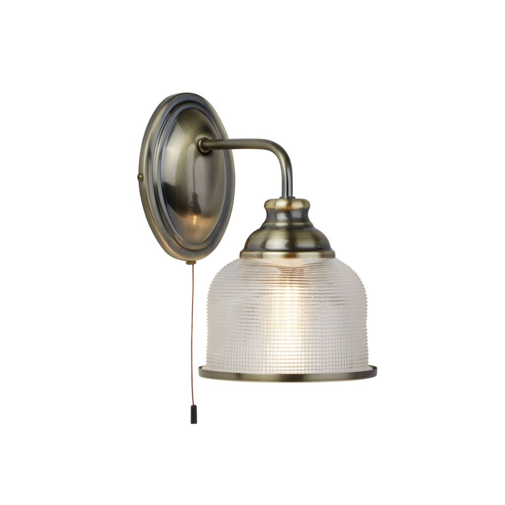Searchlight Wandleuchte Farbe antik Messing und klar, Oberfläche matt pulverbeschichtet, verwendetes Material ist Baustahl und Glas. Maße in cm: Gesamthöhe: 24,5, Höhe: 24,5, Breite: 15, Länge: 0, Ausladung: 22. Leuchtmittel Sockel E27, Glühbirnen benötigt 1, Leuchtmittel nicht enthalten, vom Hersteller empfohlener Glühbirnen-Typ ist Golfball für max 60W.
