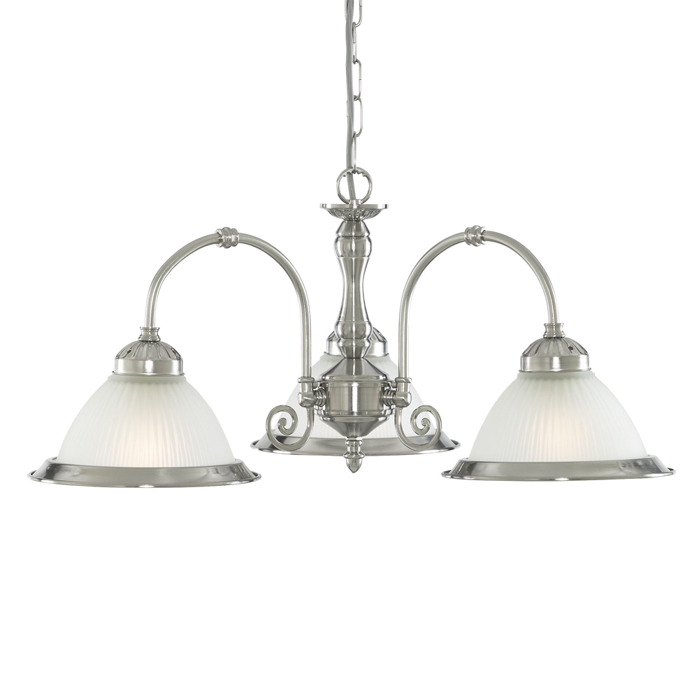 Searchlight Pendelleuchte Farbe mattsilber, Oberfläche matt plattiert, verwendetes Material ist Baustahl und Glas. Maße in cm: Gesamthöhe: 120, Höhe: 28, Breite: 62, Länge: 62, Ausladung: 0. Leuchtmittel E27-Fassung, 3 Glühbirnen benötigt, Leuchtmittel nicht enthalten, Hersteller empfohlen Glühbirne Typ ist Golfball für max 60W. |