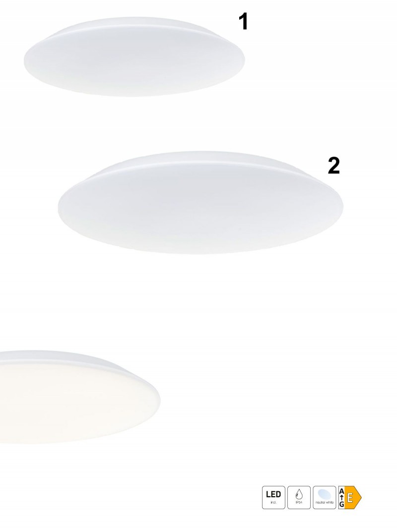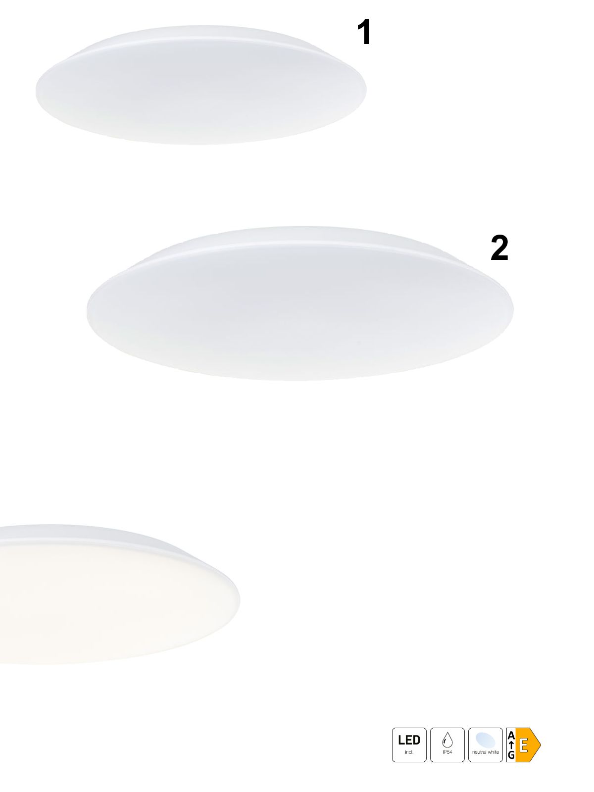 Schlichte, elegante LED Deckenleuchte aus Kunststoff. Dank IP54-Schutz auch für Badezimmer, WC etc. geeignet. Es erstrahlt in einem neutralen Weiß.