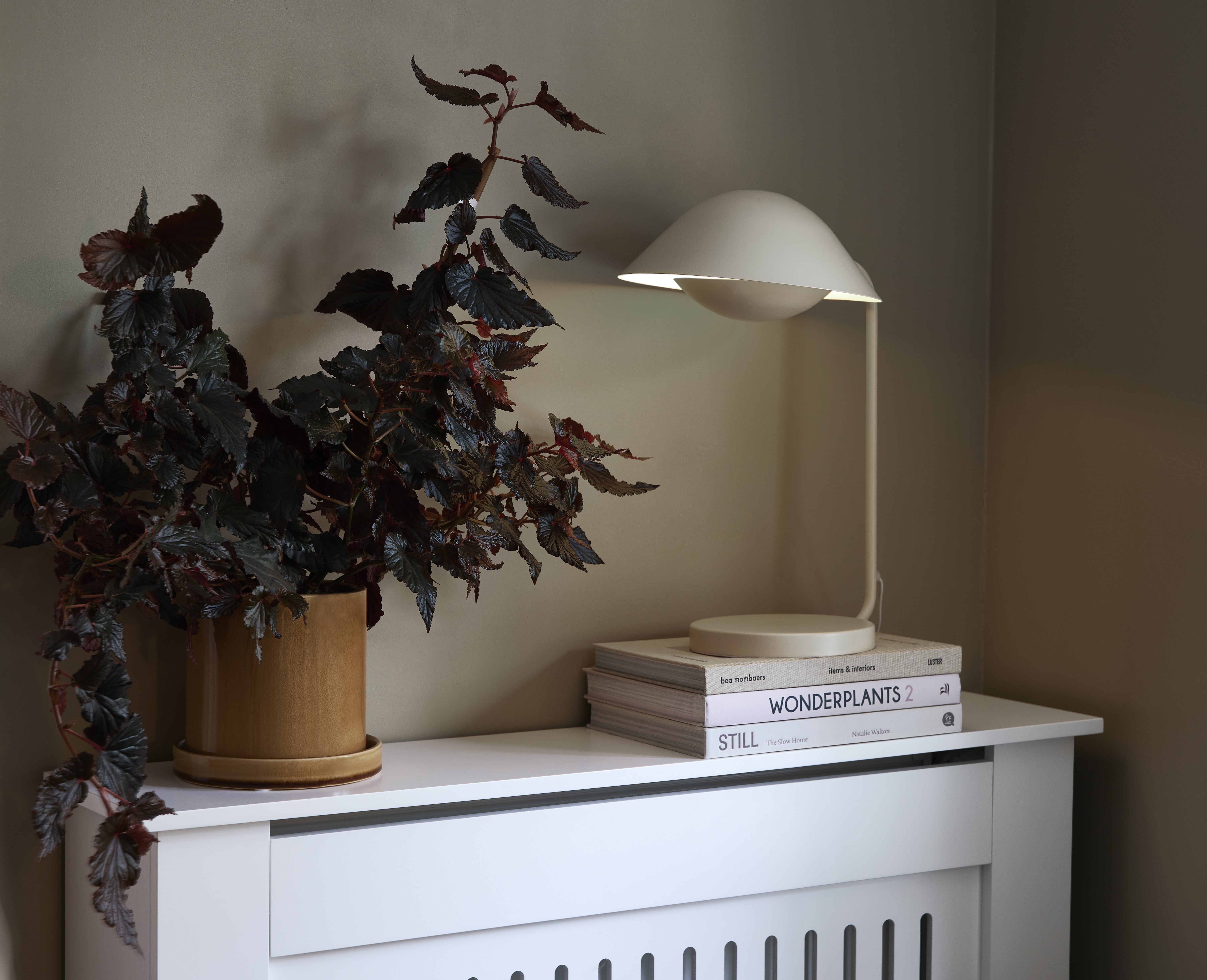 Nadčasové stolní světlo Freya s objemným stínítkem vydává měkké tlumené světlo, lampička je k dostání ve třech barevných variantách.