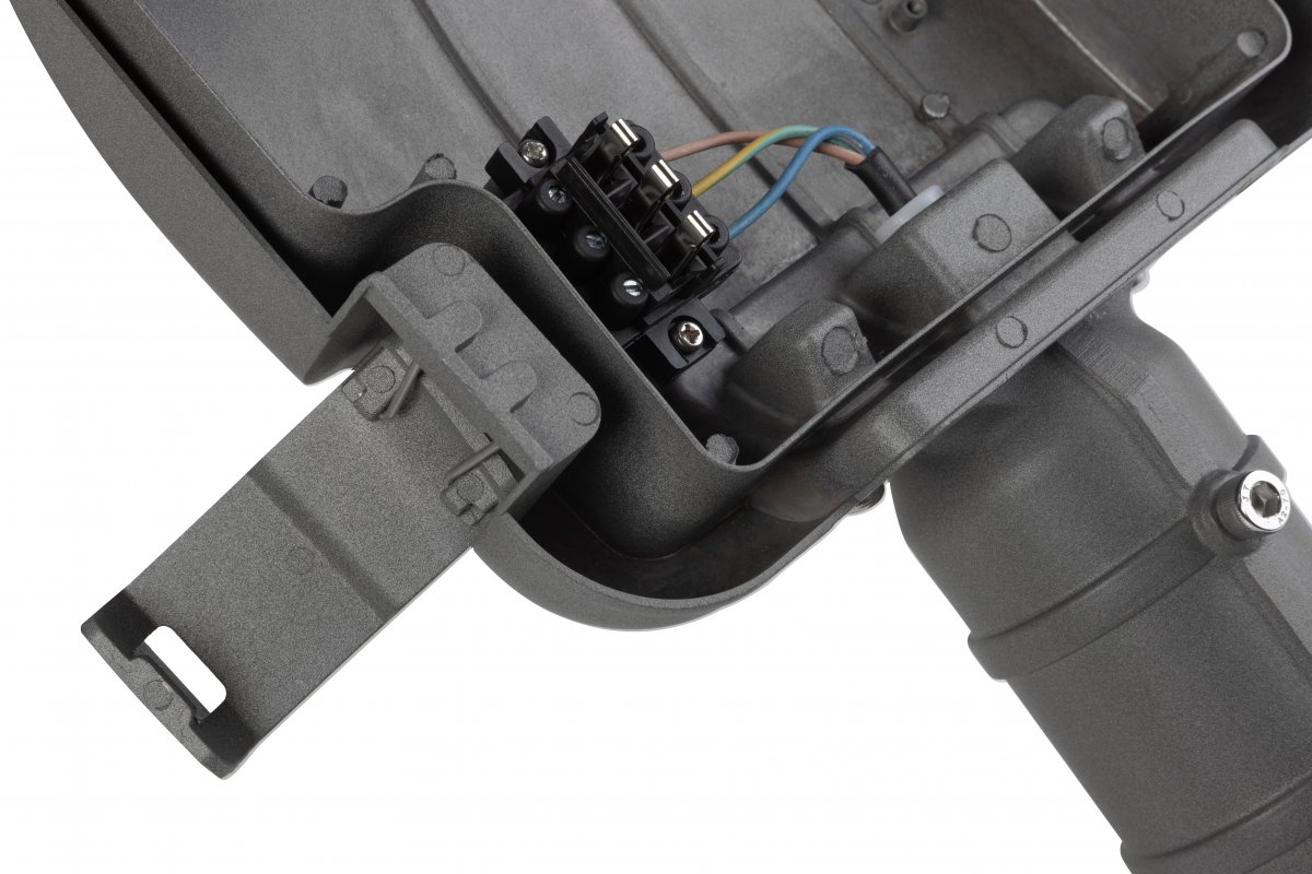 Pouliční a parková lampa DANI je moderní a efektivní řešení osvětlení, ideální pro aplikace v městských prostorách, jako jsou ulice, parky nebo sídliště. S vysokou světelnou účinností 150 lm/W poskytuje jasné a rovnoměrné osvětlení a neutrální barva světla 4000 K podporuje vizuální komfort a bezpečnost pro uživatele. Svítilna má nastavitelný úhel držáku ve dvou polohách (0° nebo 90°), což umožňuje její montáž přímo na sloup (držák svisle) nebo pomocí výložníku (držák vodorovně) s možností dodatečného nastavení sklonu. Vestavěná vodováha umožňuje přesně umístit lampu do správného úhlu.