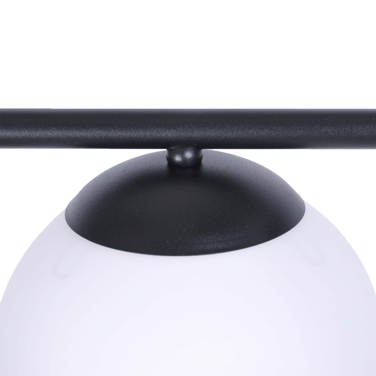 Poznávacím znamením řady VUELTA jsou skleněná stínidla vytvořená z mléčného skla - odkaz na tradiční designové techniky v osvětlení. Bílé koule příkladně zdobí celou konstrukci a dodávají jí elegantní nádech. Kostru lampy tvoří dvě černá kovová ramena, která jsou vůči sobě zkřížená v pravém úhlu. Připomínají trojnožku nebo hrubé tyče vyčnívající ze stropu v pofidérních prostorách.