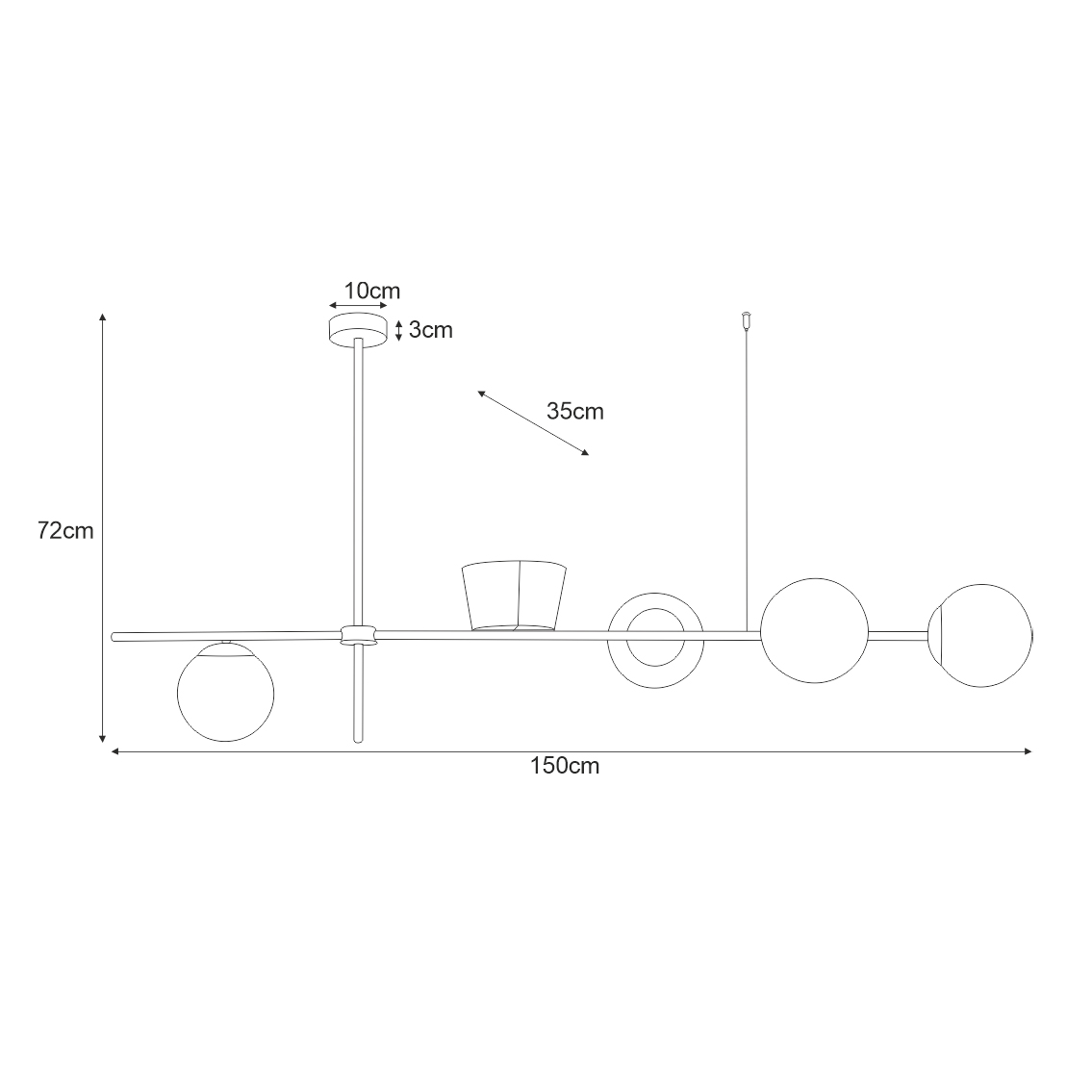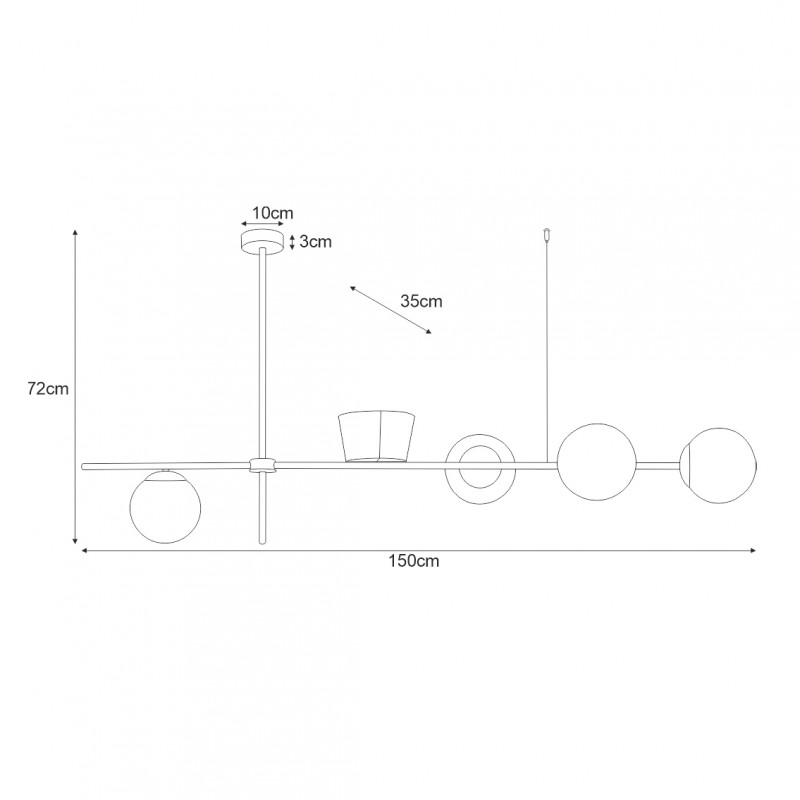 Tento návrh je ideální pro použití nad kuchyňským ostrůvkem nebo jídelním stolem. Díky své příčné konstrukci zdůrazní podlouhlé desky stolu a dostatečně je osvětlí. Svým nenápadným tvarem nebude zahlcovat design interiéru, ale doplní ho a vytvoří v místnosti zajímavý efekt.
