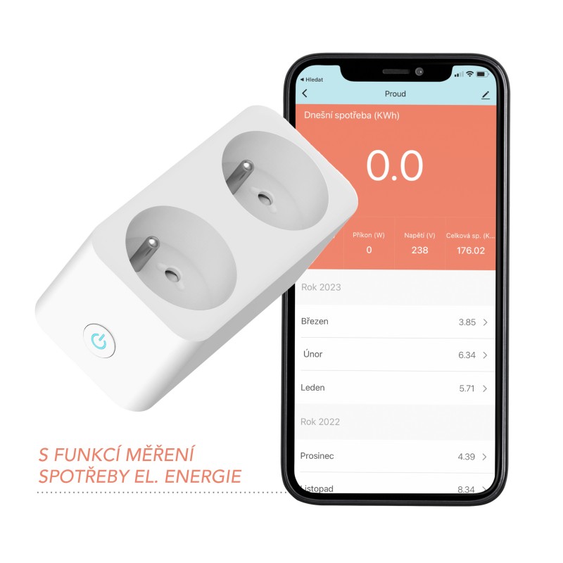 Funkce v aplikaci: ZAP / VYP, Časovač, Odpočet, Měření spotřeby