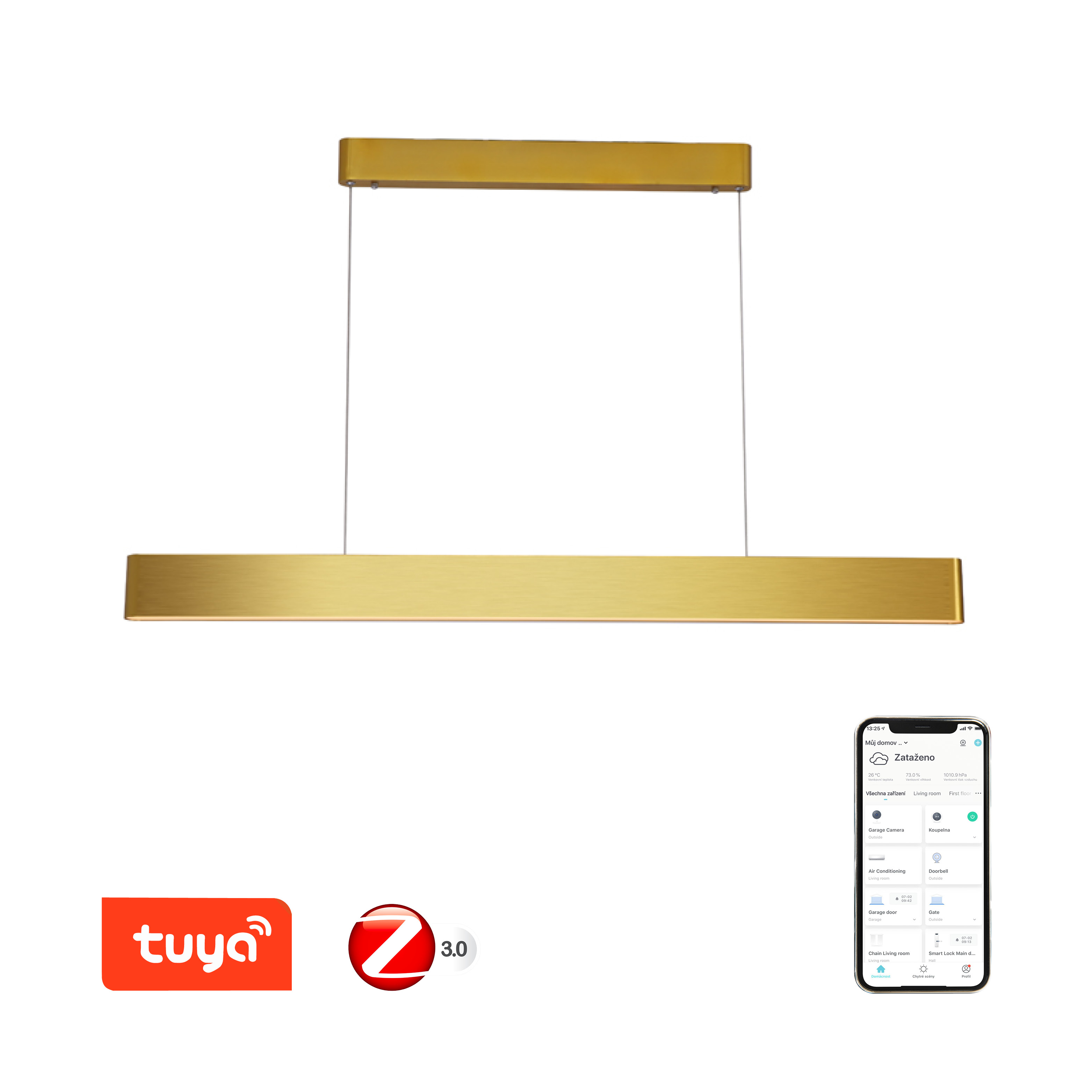 MILANO ve zlaté barvě je nejen designový doplněk, ale také splňuje funkci praktického svítidla a náladového osvětlení, přímé světlo svítí dolů v odstínech bílé barvy, pro správné osvětlení pracovní plochy, ostrůvku či jídelního stolu, nepřímé osvětlení směrem vzhůru v širokém barevném spektru (RGB), právě správně zvolenou barvou vytvoříte útulnou atmosféru a přispějete k domácí pohodě.