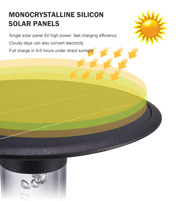 Solární panel: Monokrystalický křemík 5V/3,7W (průměr 23,5cm)