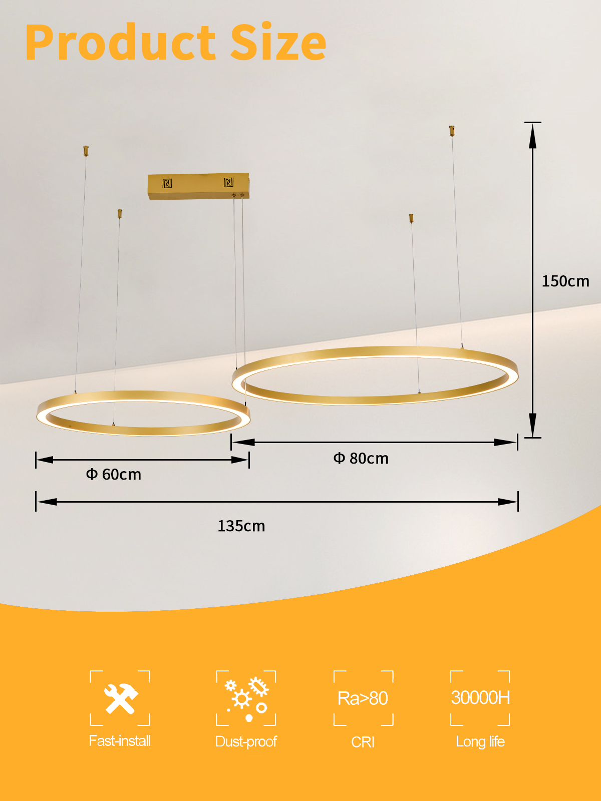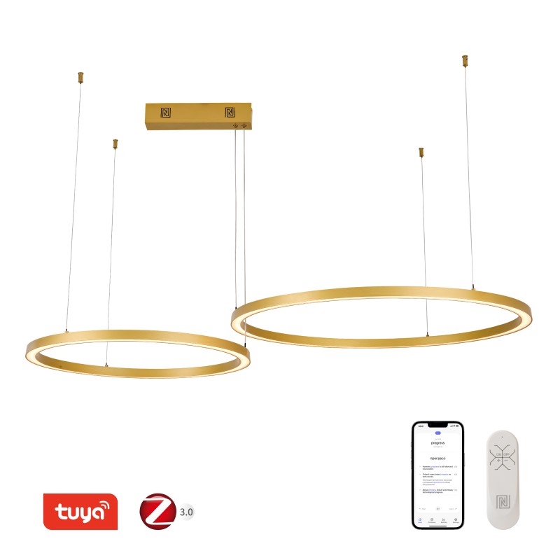 Technické parametry: Protokol: Zigbee 3.0 Materiál: kov, plast Barva svítidla: zlatá Rozměry: průměr 60 + 80cm Délka závěsu: max 150cm Barva světla: CCT 2700-6500K Příkon: 93W Světelný tok: 6975lm Stmívatelný : ano Doba svícení: 50 000 hod Vstupní napětí zdroje: (AC 220-230V 50/60Hz) CRI(Ra) Index podání barev: >86 (denní světlo má hodnotu Ra 100) Záruční lhůta: 3 roky