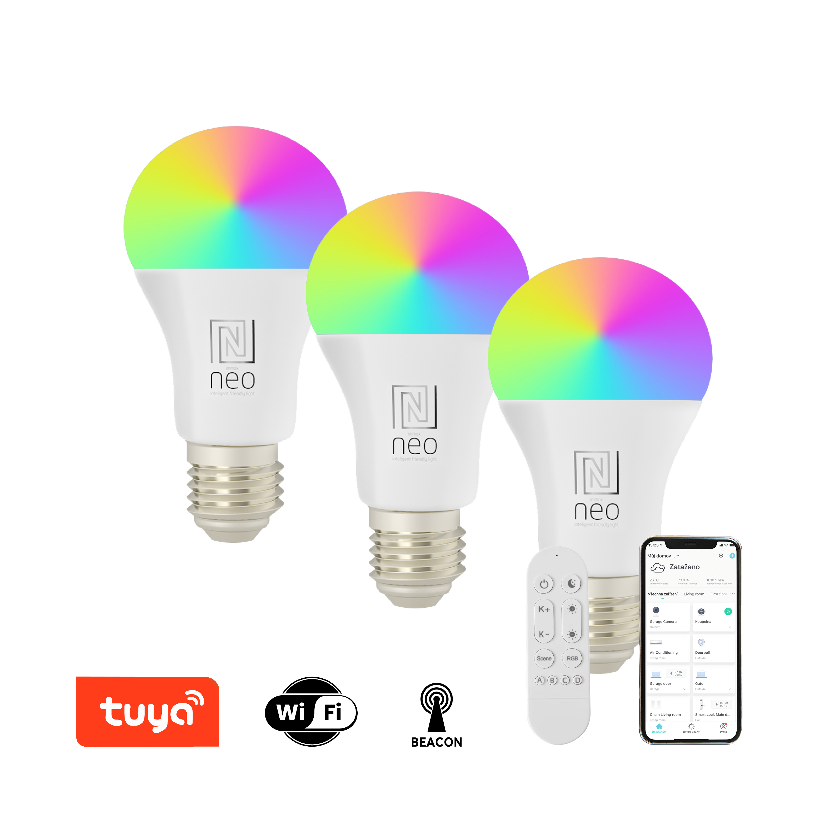 SMART WIFI systém s podporou BEACON. Jedná se o bezdrátové ovládání pomocí Bluetooth protokolu. Pomocí dálkového ovladače můžete světlo či žárovku OVLÁDAT na dálku: Není nutno dálkovým ovladačem namířit na výrobek (dosah cca 20m). Jedním dálkovým ovladačem lze ovládat až 30 výrobků. Není potřeba vlastnit chytrou bránu (Bridge).
