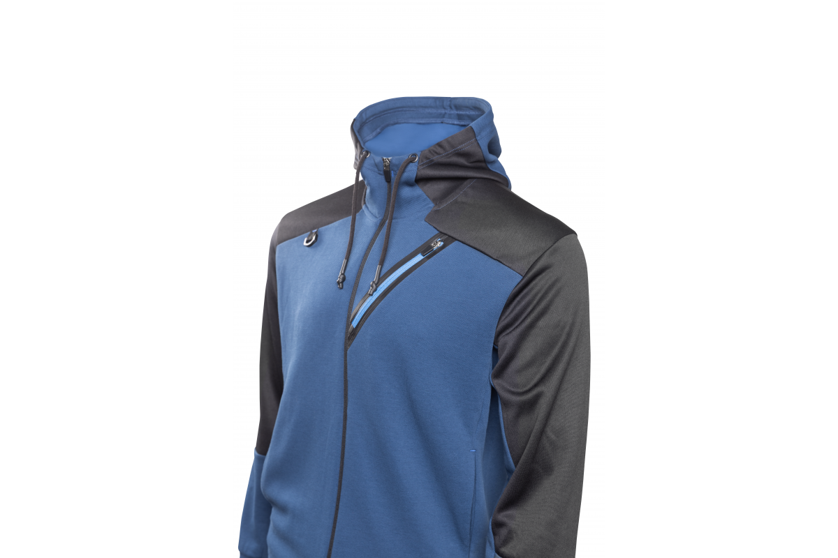 Mikina ERIK je pohodlný a funkční oděv pro každodenní nošení určený pro uživatele pracující na cestách nebo v lehkém průmyslovém prostředí. Pletenina s přídavkem elastanu zajišťuje pružnost a přiléhavost, zatímco kapuce a klokaní kapsa přispívají k praktičnosti používání. Moderní kombinace modré a černé barvy dodává mikině dynamický, sportovní charakter, který se hodí do práce i na každodenní nošení venku.