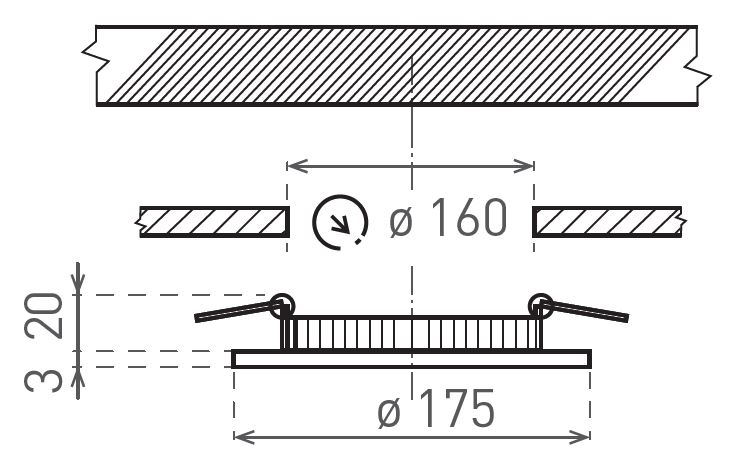 Svítidlo je vybaveno pružinovými úchyty, které umožňují snadnou instalaci například do sádrokartonu.