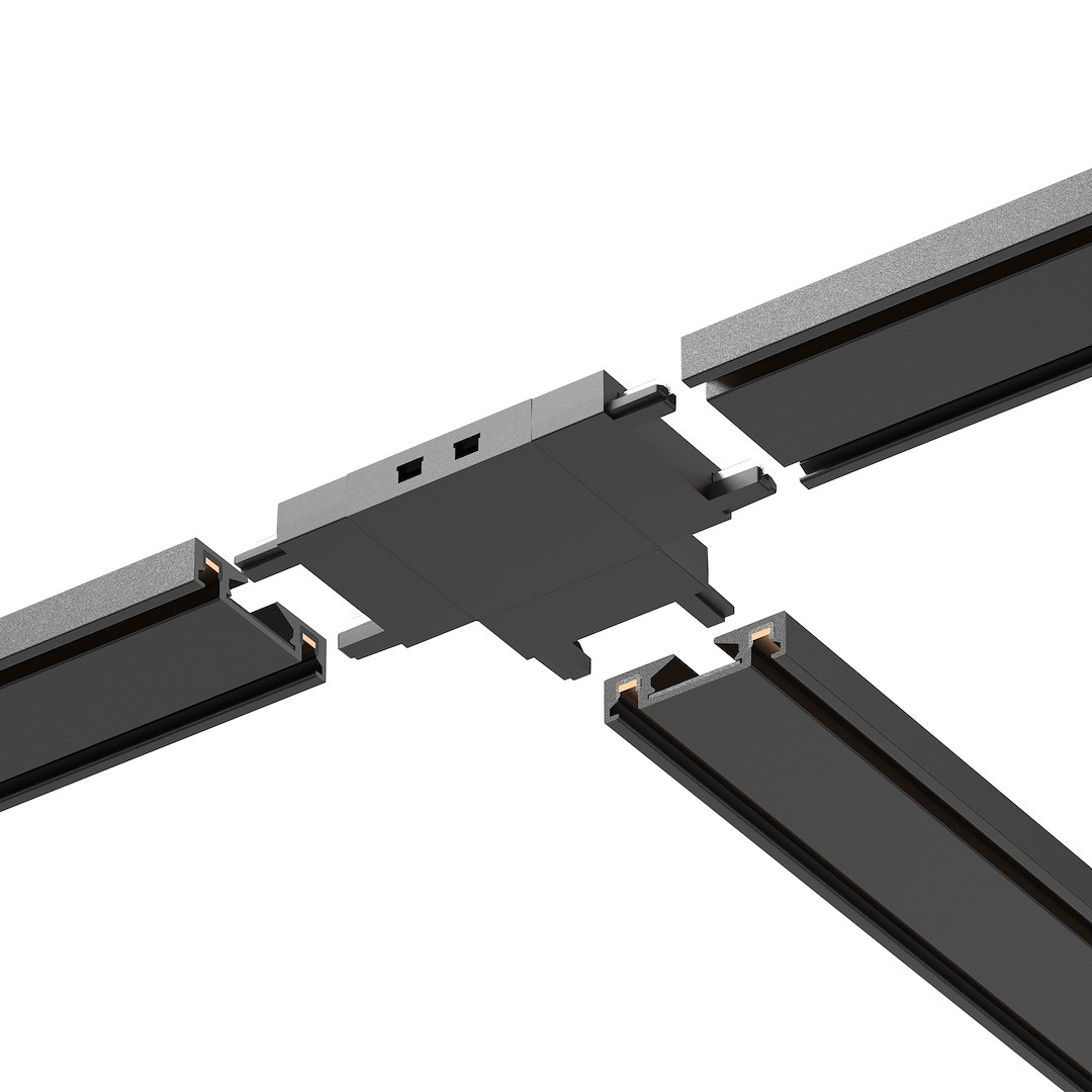 | Černý spínač ve tvaru T umožňuje rozdělení instalace do tří směrů. Je to řešení určené pro větší prostory, kde je třeba vést světlo v několika směrech současně. Poskytuje stabilní elektrické a mechanické spojení a zároveň umožňuje kreativní design osvětlení. | |
