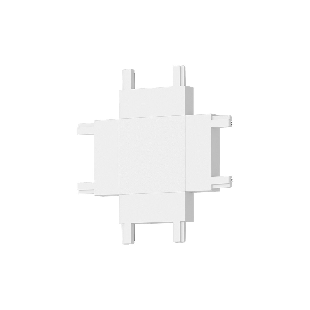 | Bílý kolejnicový konektor ve tvaru "+" nabízí možnost vedení instalace ve čtyřech směrech současně, což otevírá nové možnosti designu. Je vhodný pro rozsáhlé osvětlovací systémy, kde je požadováno optimální osvětlení více oblastí současně. | |