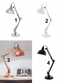 Bürolampen im klassischen Stil. Sie bestehen aus Stahl. Sie haben einen flexiblen Arm und einen flexiblen Schirm, sodass sie sich leicht an die Stelle anpassen, an der Sie strahlen möchten. |