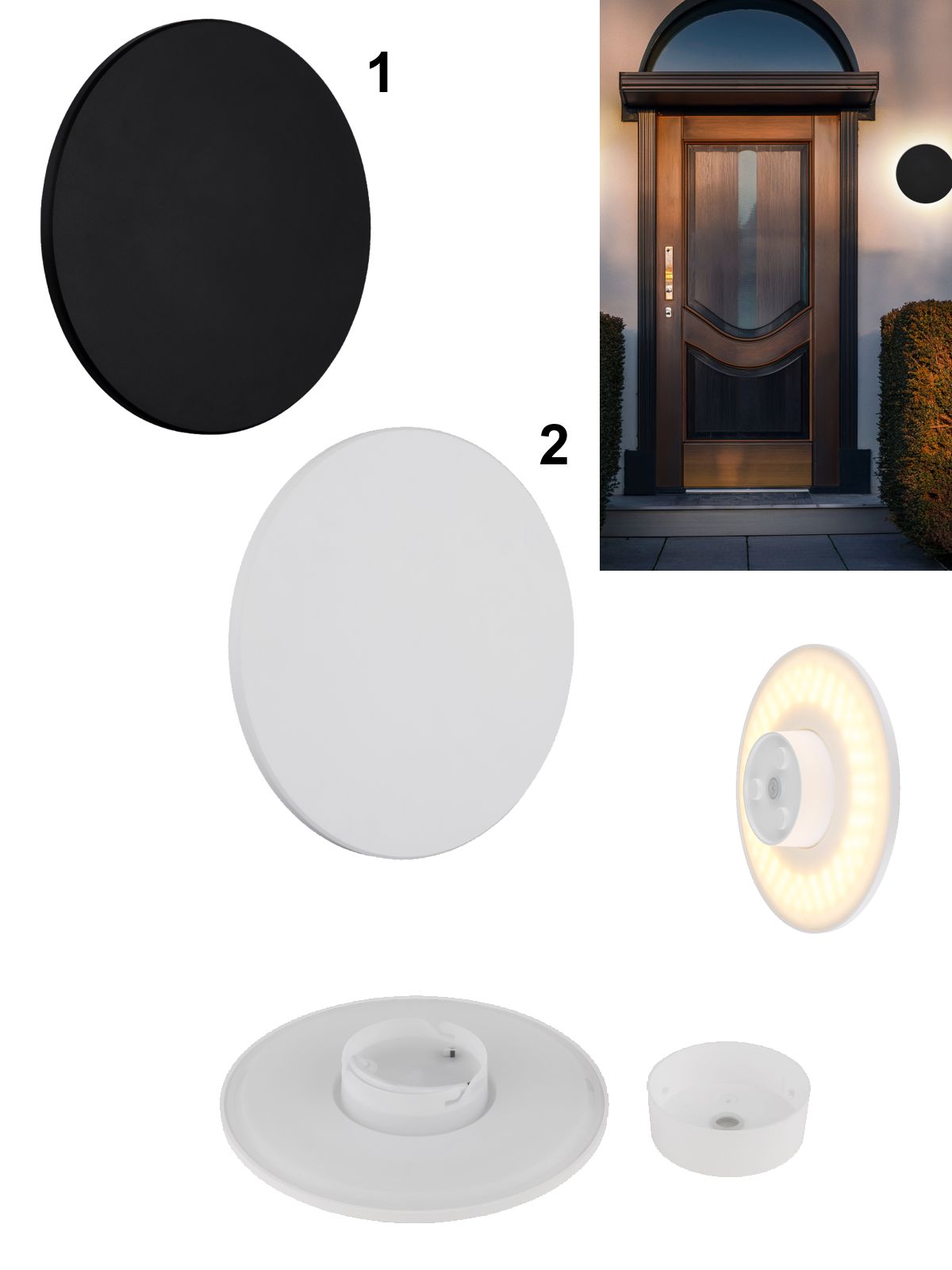 Wandleuchte aus Kunststoff. Dank IP44 auch im Außenbereich einsetzbar. Sie beleuchtet den Hauseingang oder die Garage und setzt dort ein interessantes Element. Die Leuchte ist schlicht, aber elegant. Mit CCT-Umschaltung auf 3000K/4000K oder 6000K. |