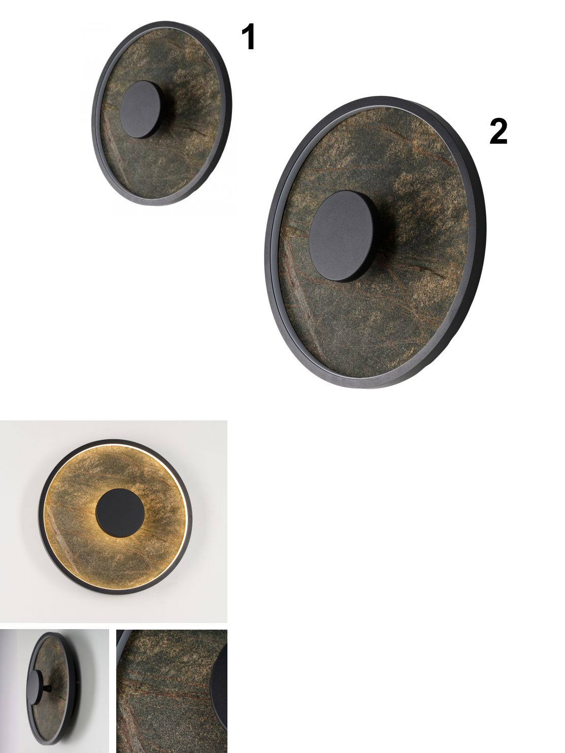Stilvolle Wandleuchten aus Aluminium, Stein und Silikon. Sie leuchten in warmweißem Licht. Die LED-Lichtquelle ist fest verbaut und nicht austauschbar. |
