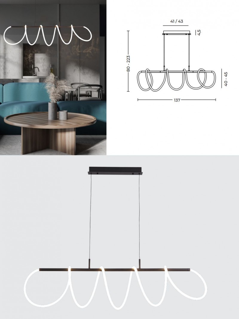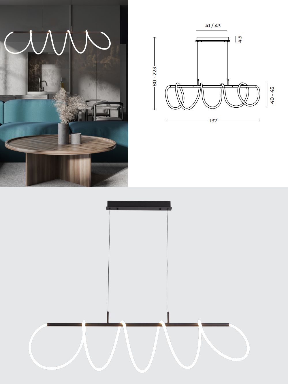 Die Zickzack-Designleuchte besteht aus Aluminium und einem Silikonschirm. Der schwarze Fuß verleiht ihr eine elegante Optik. Sie fügt sich perfekt in moderne Einrichtungen ein und leuchtet warmweiß. Die LED-Lichtquelle ist fest verbaut und nicht austauschbar.