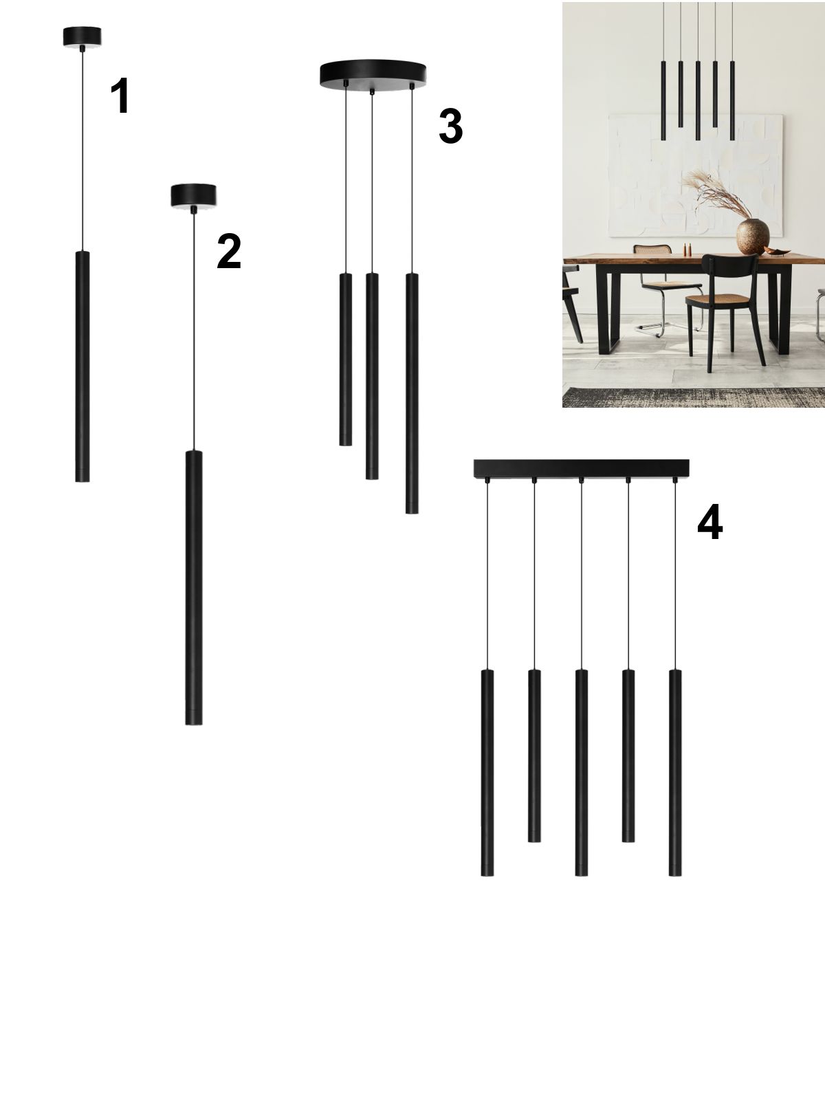 Schlichte, elegante Kronleuchter in Zylinderform. Sie sind aus schwarzem Aluminium gefertigt. Die LED-Lichtquelle ist fest verbaut und nicht austauschbar. |