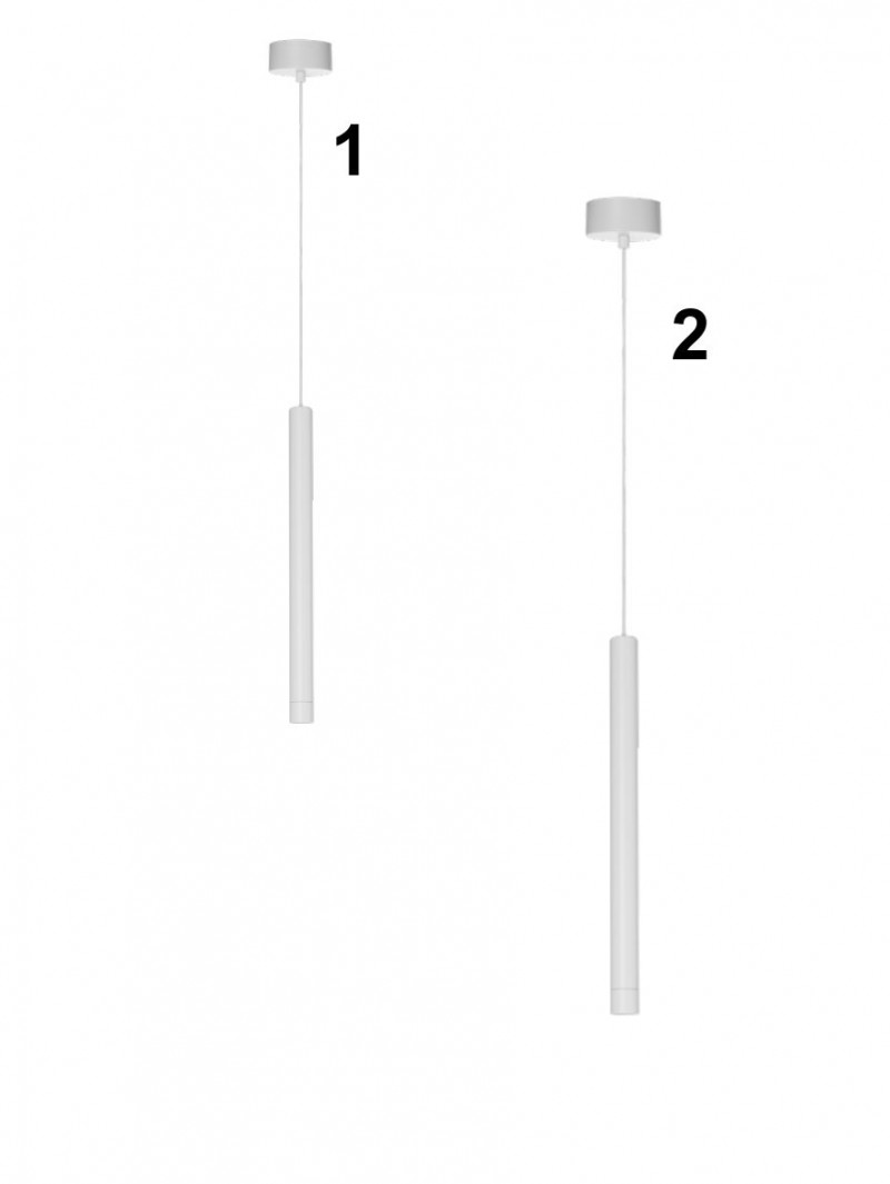 Schlichte, elegante Kronleuchter in Zylinderform. Sie sind aus weißem Aluminium gefertigt. Die LED-Lichtquelle ist fest verbaut und nicht austauschbar. |