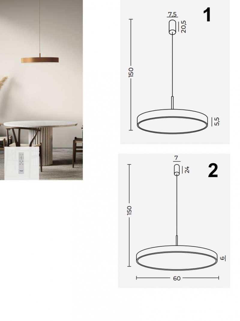Moderne Pendelleuchte aus Aluminium und Kunststoff. Dank der Fernbedienung lässt sich die Leuchte dimmen und die Farbtemperatur von 3000 K bis 6500 K einstellen. Die Marcello-Leuchte ist eine stilvolle Ergänzung für Ihre Einrichtung. Die LED-Lichtquelle ist fest verbaut und nicht austauschbar. |