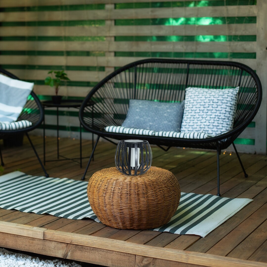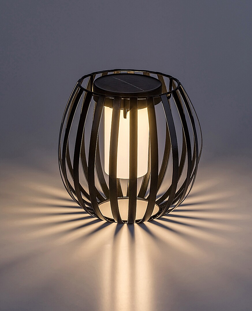 Solární venkovní dekorativní lampa Rabalux Savoca je ideální volbou pro ty, kteří ocení jedinečný design a flexibilní umístění. Kulatý, mřížkovaný rám této designové lampy je vyroben z kovu v černé barvě a doplňuje jej bílé plastové stínidlo. Válcovité stínidlo, které ukrývá světelný zdroj, je připevněno uvnitř horní části rámu lampy. Tato moderní solární lampa se ovládá spínačem a má vestavěný LED světelný zdroj, který vyzařuje teplé bílé světlo. Je ideální pro stůl na terase nebo v zahradě, kde pomáhá vytvářet útulnou a intimní atmosféru. Lampa je vybavena vestavěnou baterií, která se nabíjí 6–8 hodin a na jedno nabití funguje stejnou dobu. Je chráněna proti vniknutí pevných částic o průměru 1 mm nebo větším a proti stříkající vodě ze všech směrů.