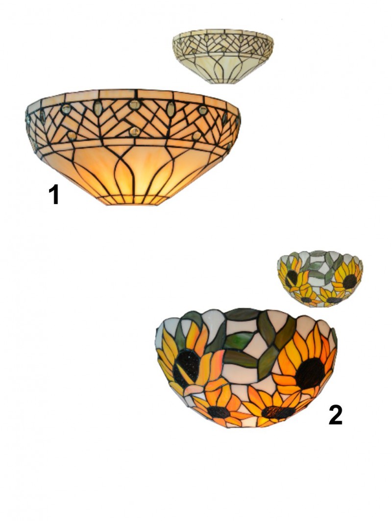 Die Wandleuchten Tiffany XXIV und Tiffany XXIII passen hervorragend zur Tiffany-Lampenfamilie. Sie bestehen aus Metall und verziertem Glas und verfügen über ein E14-Gewinde. Die Leuchte wird ohne Leuchtmittel geliefert. Dieses muss separat erworben werden. |