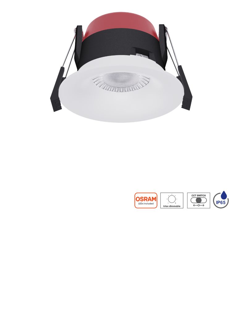 Der Axt Einbaustrahler besteht aus silberfarbenem Aluminium und mattweißem Kunststoff. Die Farbtemperatur (CCT) lässt sich über den Schalter an der Leuchte von 2700 K bis 6500 K einstellen. Dank Schutzart IP65 eignet er sich auch für Feuchträume wie Badezimmer oder Toiletten sowie für Balkone oder Terrassen. Er ist dimmbar. Die OSRAM-LED-Lichtquelle ist integriert. |