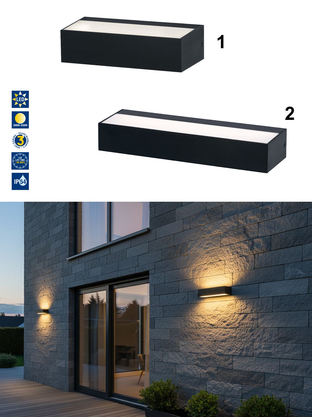 Die Imola CCT-Leuchte ist aus schwarzem Kunststoff gefertigt. Dank des CCT-Schalters lässt sich die Farbtemperatur auf 3000 K, 4000 K oder 6000 K einstellen. |
