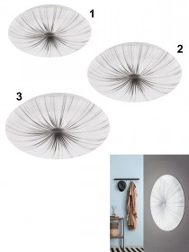 Nieves ist eine Reihe sehr interessanter Deckenleuchten. Sie bestehen aus Stahl in weißer Farbe und Kunststoff in weißer Farbe mit goldenem Dekor. Diese Leuchten können nicht gedimmt werden.