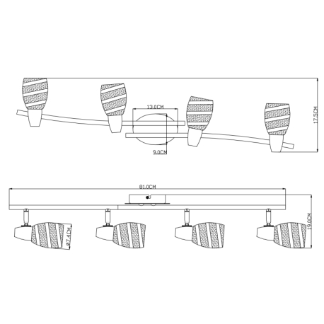 GL-54985-4 Stropní svítidlo, chrom, satinované sklo, DxV: 81x19cm, bez žárovek 4xE14, max. 40W 230V. -