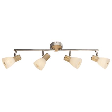 GL-54352-4 Stropní svítidlo, nikl matný, dřevo, sklo bílé pruhované, DxV: 60x16cm, bez žárovek 4xE14, max. 40W 230V. -