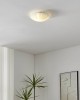 Runde Mars-Lampen haben einen Metallsockel und weißes Satinglas. Sie sind sowohl für die Decke als auch für die Wand geeignet.