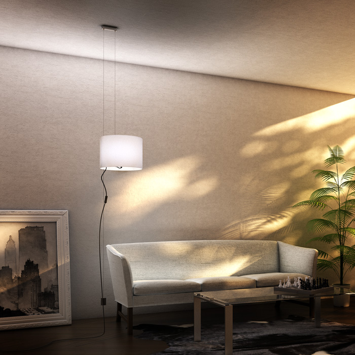 Hängeleuchte mit Steckseil, geeignet für Orte ohne Stromversorgung von der Decke. Der Schalter befindet sich am Netzkabel. |