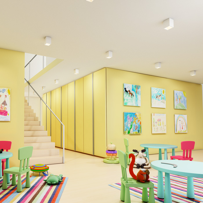 Moderne quadratische Lampe aus Gips. Die Lampe kann mit Innenfarben neu lackiert werden. Es ist möglich, sie mit einer intelligenten LED-Glühbirne auszustatten und sie mit einem Smartphone zu dimmen sowie die Temperatur und Farbe der Beleuchtung zu ändern. |