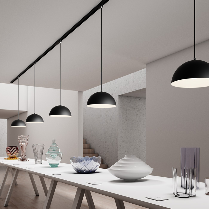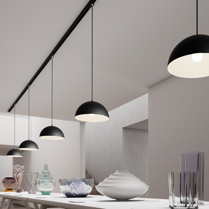 Hängeleuchte mit Adapter in Drei-Kreis-Schiene. |