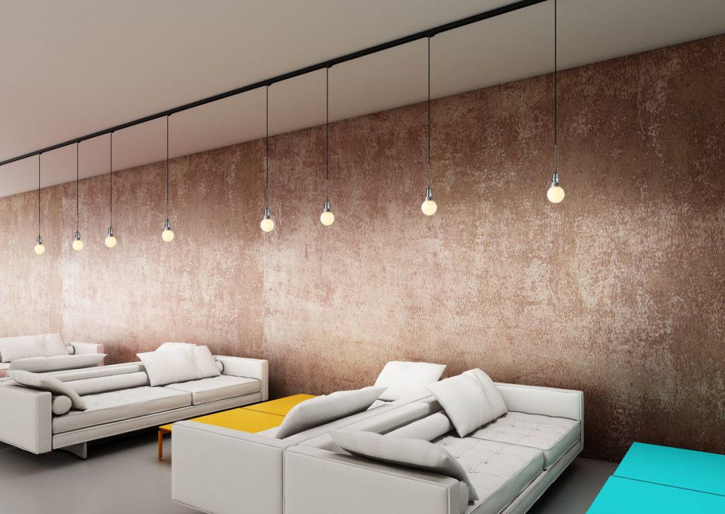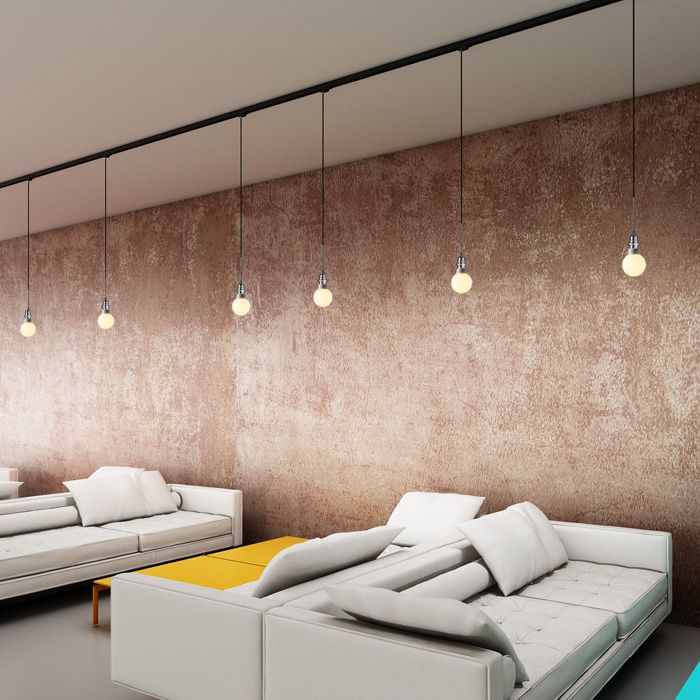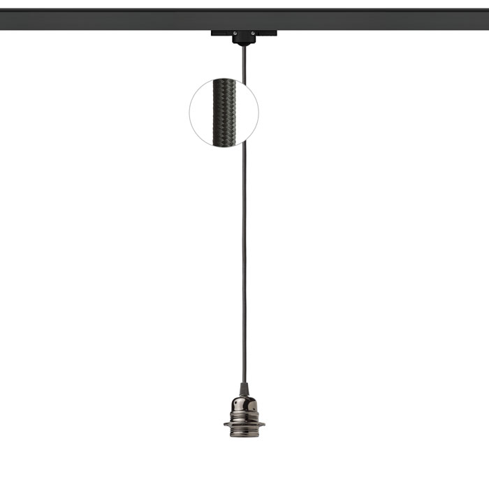 Textilkabel mit Metallhülse in verschiedenen Farbkombinationen, endend mit einem Adapter zum Einhängen in eine Dreiringleiste. |