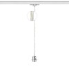 Textilkabel mit Metallhülse in verschiedenen Farbkombinationen, endend mit einem Adapter zum Einhängen in eine Dreiringleiste. |