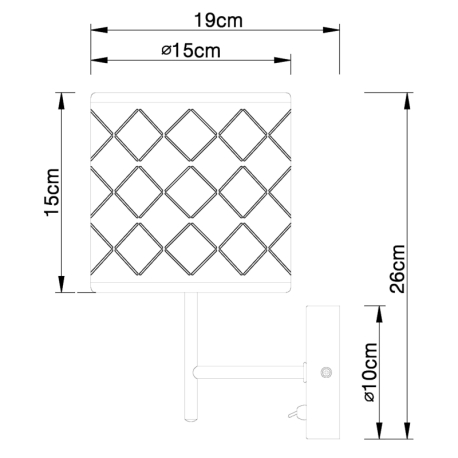 GL-15229W Nástěnné svítidlo, kov nikl matný, textil černý a zlatý, stínidlo s ozdobným děrováním, vypínač, ?xV: 15x26cm, H:19cm, bez žárovky 1xE14, max. 40W 230V. -