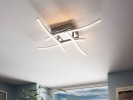 Moderne LED-Leuchten aus Aluminium in Chromfarbe und Kunststoff in Weiß. Sie eignen sich für Wohnzimmer, Schlafzimmer, Büros und Flure. Sie strahlen in einem warmweißen Farbton und sind nicht dimmbar.