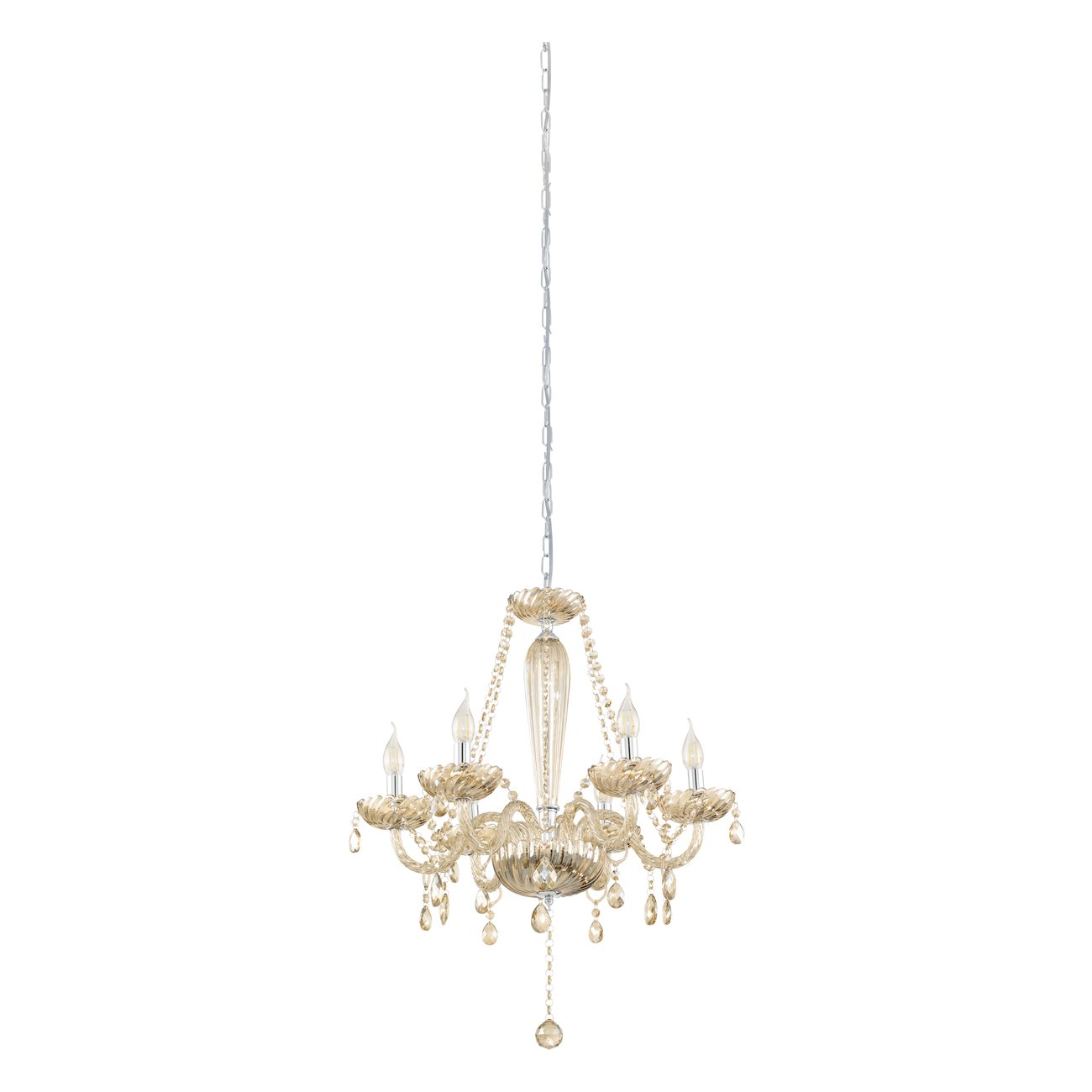 Basilano sind Kronleuchter im klassischen Stil. Sie bestehen aus Stahl in der Farbe Chrom und Glas in der Farbe Cognac. |