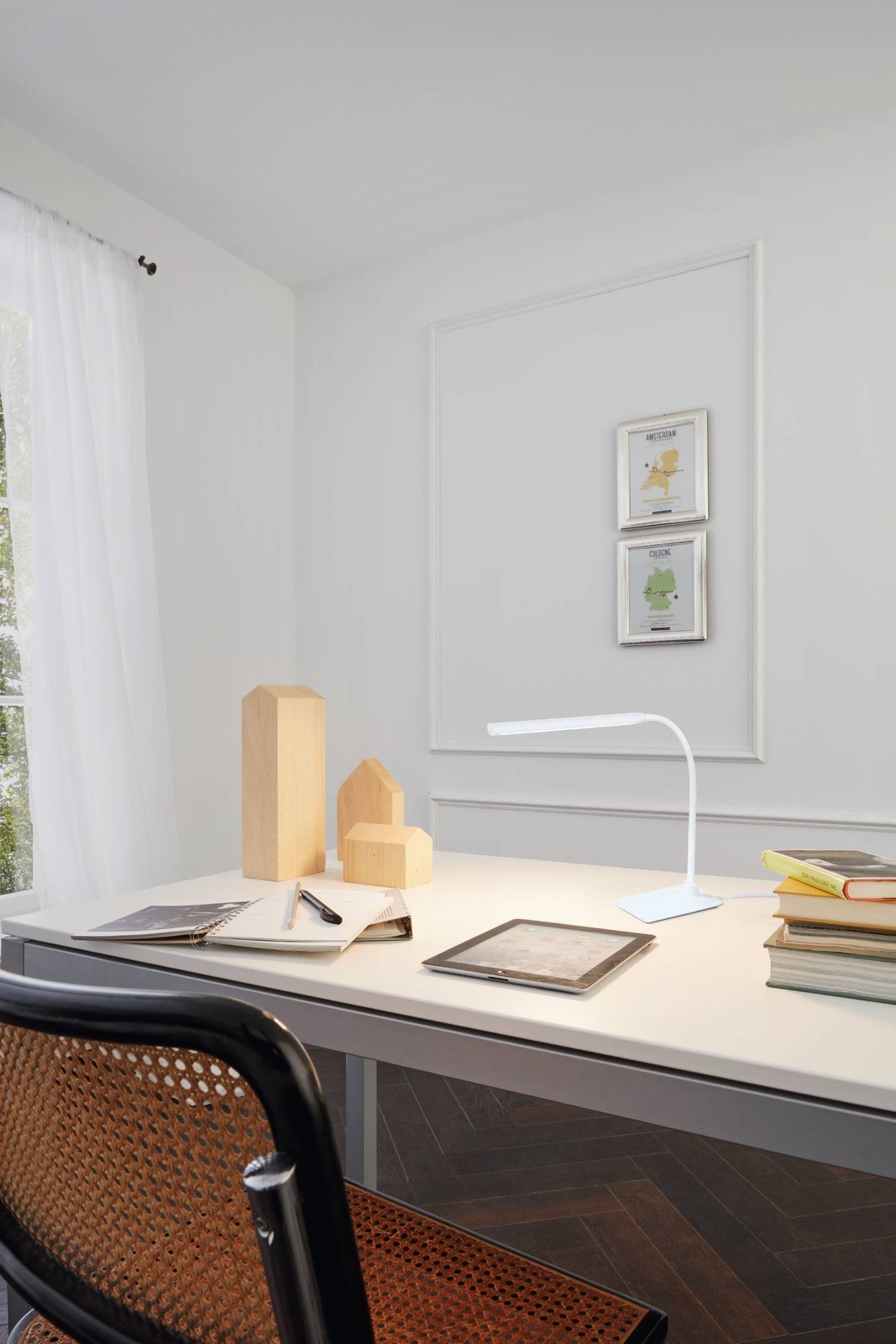 Interessante Lampen und Tischlampen geeignet für Büros, Werkstätten und Studentenzimmer. Sie bestehen aus Kunststoff. Es erstrahlt in einem neutralen Weiß.